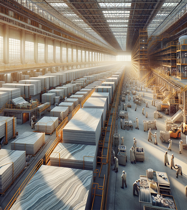 با دسترسی به معادن غنی و خطوط تولید مجهز، مجموعه CNT توانایی تأمین انواع سنگ خام، اسلب و تایل را برای پروژههای کوچک و بزرگ دارد. کیفیت یکپارچه و پایداری تأمین، مزیت اصلی ماست.