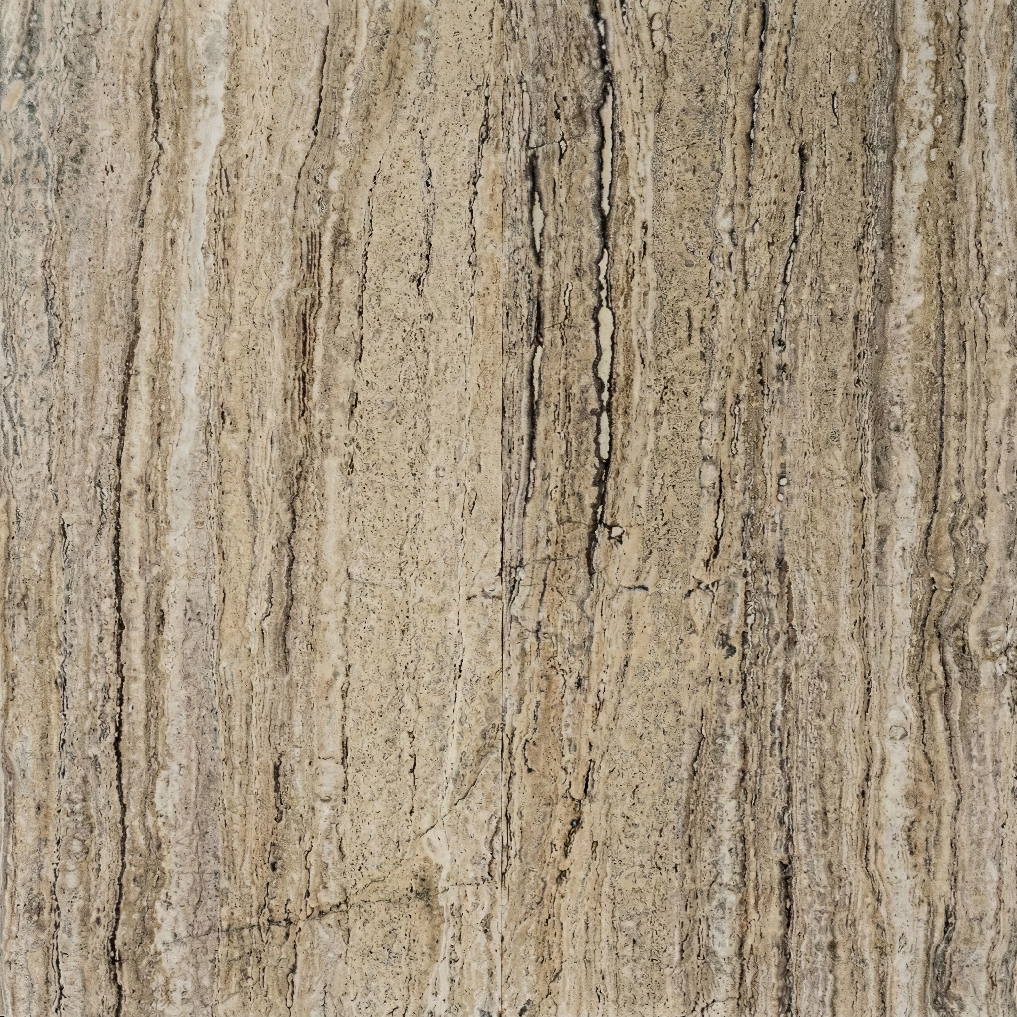 The most prominent feature of this stone is its veining pattern. Veins of dark brown, charcoal, and occasionally black run linearly and continuously throughout the stone. These veins, with varying thicknesses and natural fractures, create a captivating yet balanced contrast that draws the eye. The stone’s surface is processed with a matte finish, preserving the natural pores and tiny cavities of travertine to convey a sense of authenticity and a touch of nature to the space.