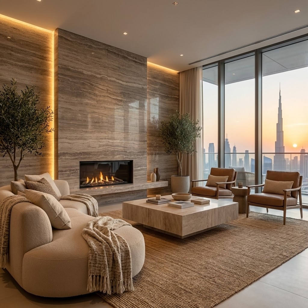 High Versatility: Due to its neutral yet warm color palette, this stone easily combines with materials such as dark leather, wood, glass, and metals, creating a luxurious yet inviting atmosphere.