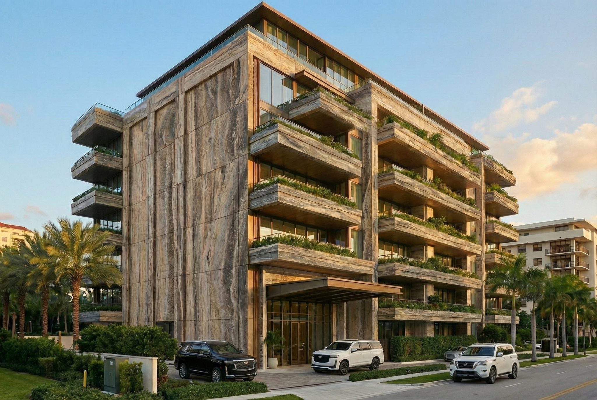Distinct Visual Character: Unlike uniform and simple stones, Code 001 possesses a distinct “character”. Its presence in building facades (such as luxury towers) or interior walls (like lobbies and executive offices) transforms the space, adding depth and dynamism.